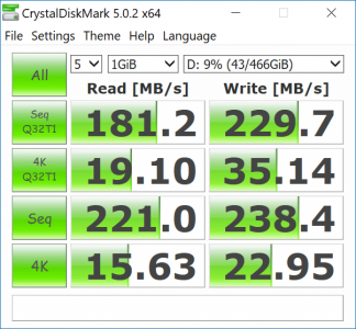 To measure the USB 3.0 performance, we connected an SSD via a USB-SATA bridge JMS567.