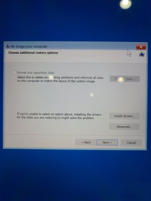 There is a box you check to tell it to recover "all" partitions, but I can't check it. The next box below says I have to load hardware drivers if you can't check the box. I have looked all over for these drivers.