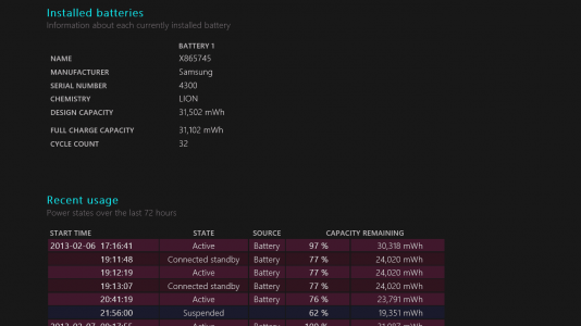 Hi, I just ran powercfg /batteryreport in CMD and the generated report states after 30 charge cycles, my full charge capacity has dropped to 27,646mWh. the designed capacity is 31,502mWh, so my battery lost 12% of capacity in just 2 month!!